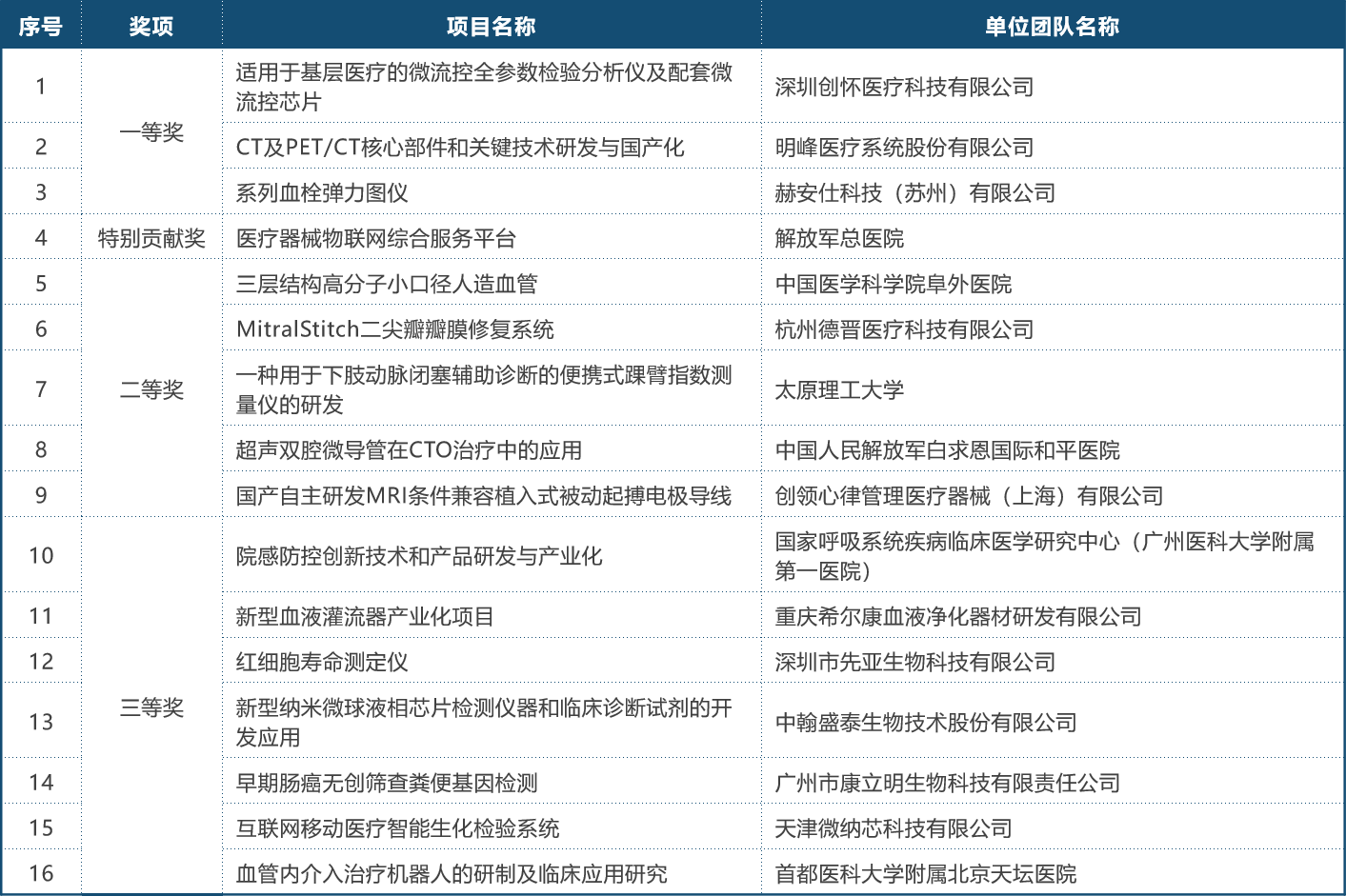 首届(2018)年中国医疗器械创新网创业大赛决赛获奖名单